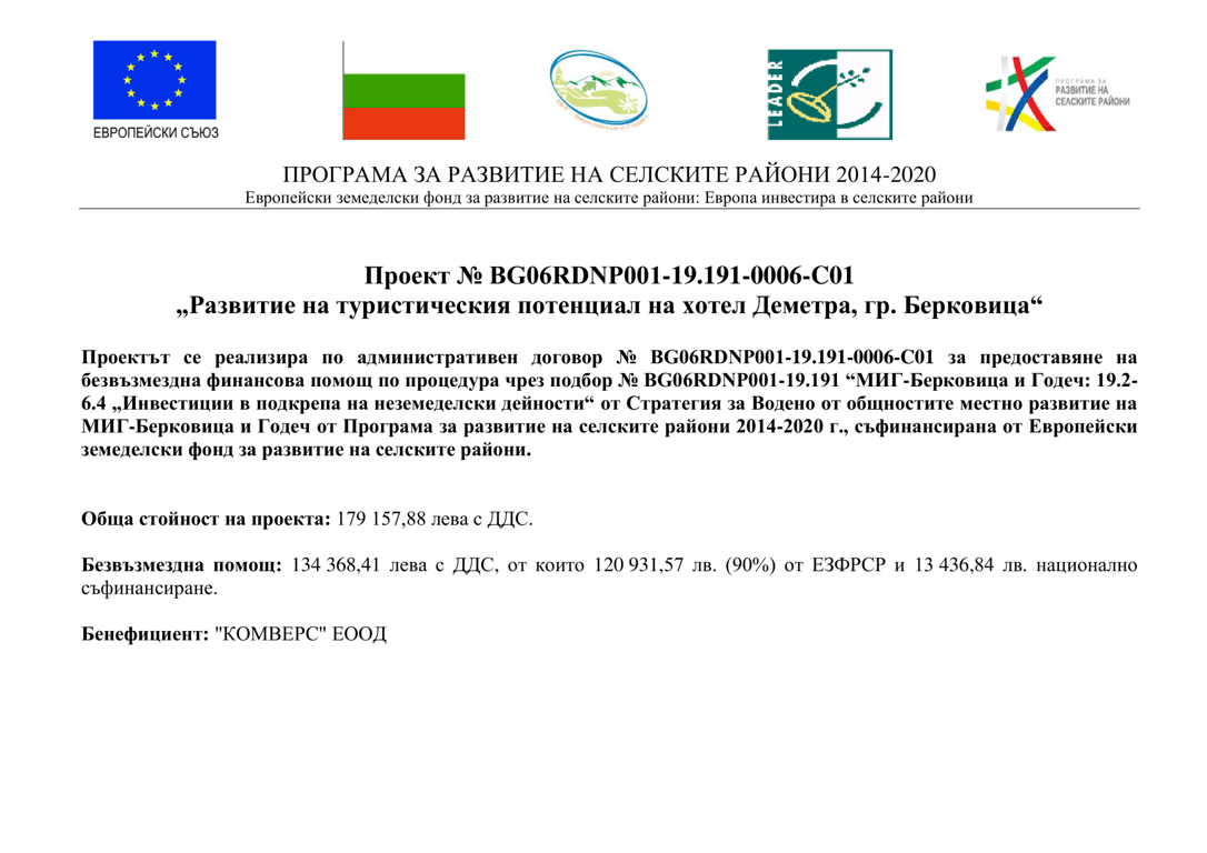 Семеен хотел Деметра успешно завърши проект за обновяване, финансиран по Програмата за развитие на селските райони 2014-2020.