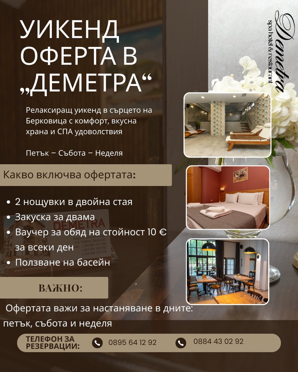 Валидна за настаняване: петък, събота и неделя